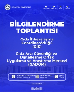 | GIDA İHTİSASLAŞMA KOORDİNATÖRLÜĞÜ KOORDİNASYON KURULU TOPLANTISI GERÇEKLEŞTİRİLDİ 19/11/2025 92 Okunma |